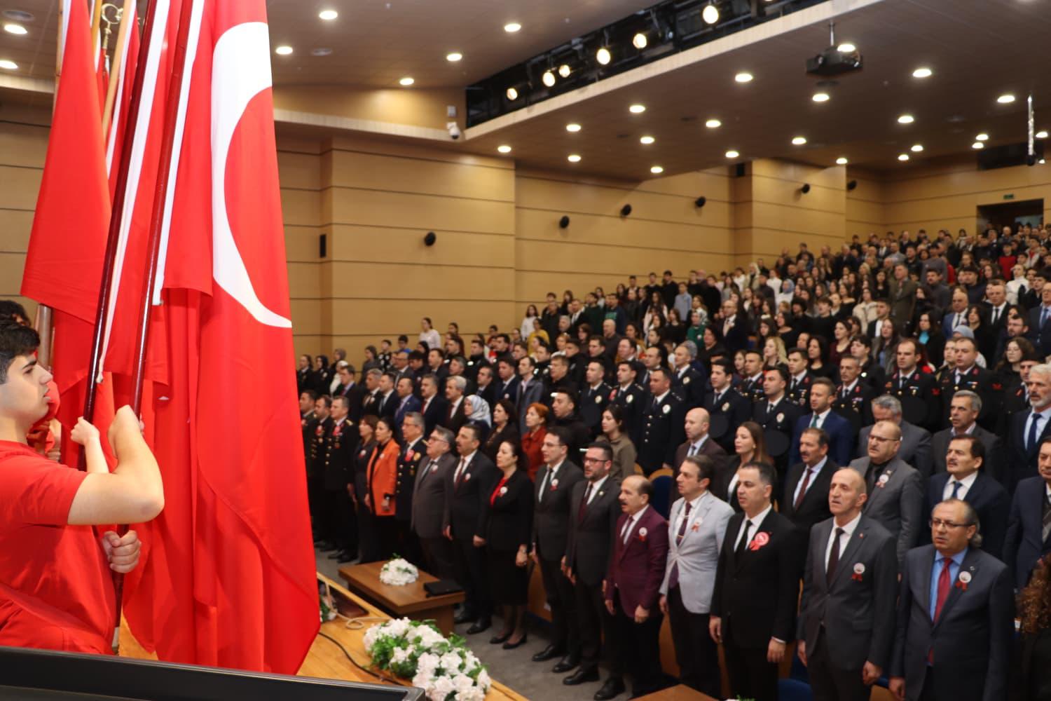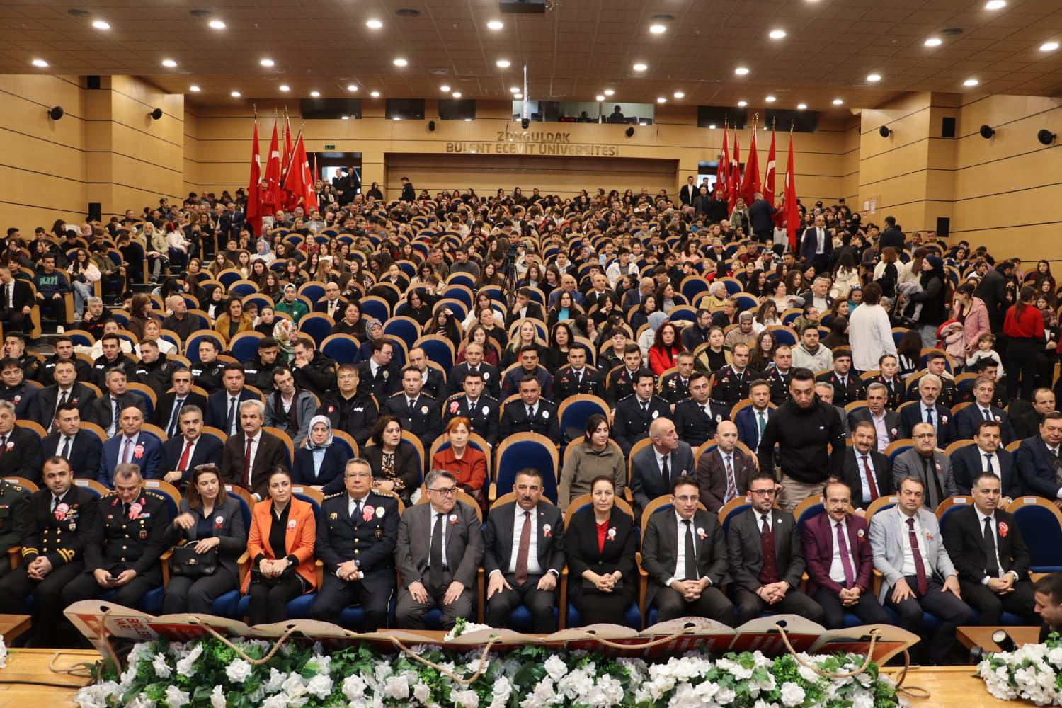 Valimiz Sayın Osman HACIBEKTAŞOĞLU, Hanımefendi Sayın Güney HACIBEKTAŞOĞLU, İl protokolü ve İl Müdürümüz Sayın Mehmet Türkmen KÖSE 18 Mart Şehitleri Anma Günü ve Çanakkale Zaferi’nin 111. yıl dönümü etkinlikleri kapsamında Zonguldak Bülent Ecevit Üniversitesi Sezai Karakoç Kültür Merkezi’nde düzenlenen programa katılım sağlamışlardır.