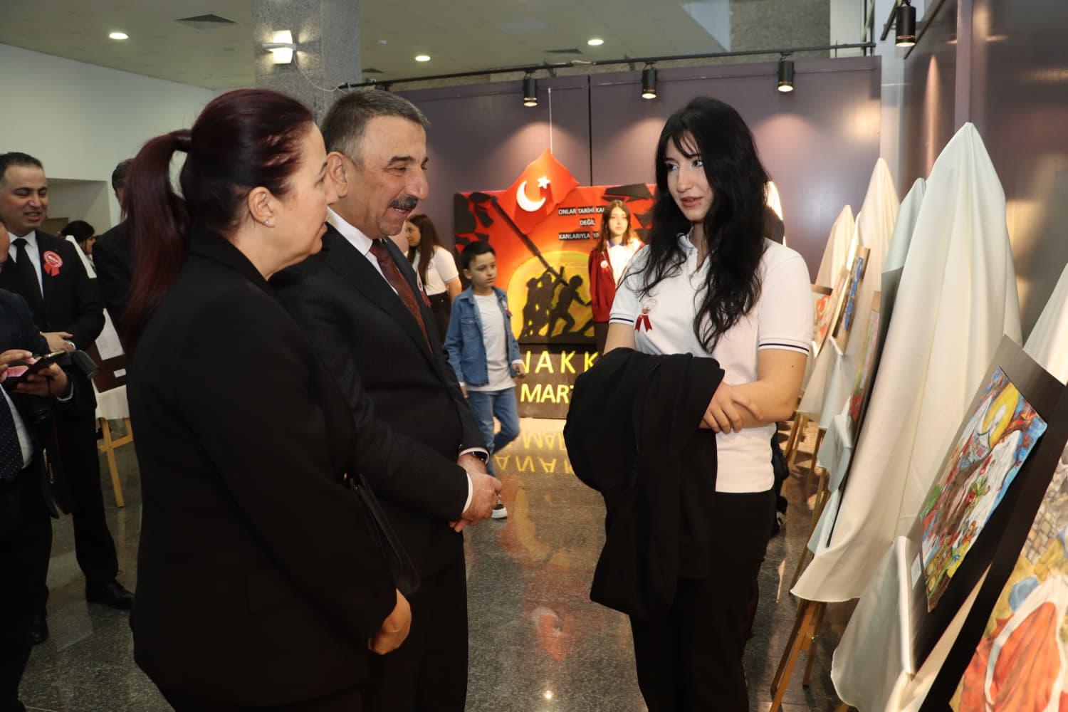 Program kapsamında; İl Milli Eğitim Müdürlüğü tarafından hazırlanan “Bir Destandır Çanakkale” temalı resim, şiir ve kompozisyon yarışmasında dereceye giren öğrencilerin eserlerinden oluşan serginin açılışı gerçekleştirildi.