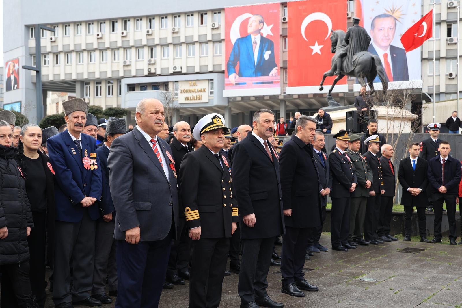 Program Valilik önünde bulunan Şehitler Anıtı’na çelenk sunma töreniyle başlamıştır. Düzenlenen törene Valimiz Sn. Osman HACIBEKTAŞOĞLU, il protokol üyeleri, İl Müdürümüz Sn. Mehmet Türkmen KÖSE, Zonguldak Şehit Aileleri Sosyal Yardımlaşma ve Dayanışma Derneği Başkanı Sn. Mustafa YORULMAZ, Zonguldak Muharip Gaziler Derneği Başkanı Sn. Necmettin ÇANTAŞ, aziz şehitlerimizin değerli yakınları ve kahraman gazilerimiz ile birlikte daire amirleri katılım sağlamıştır.