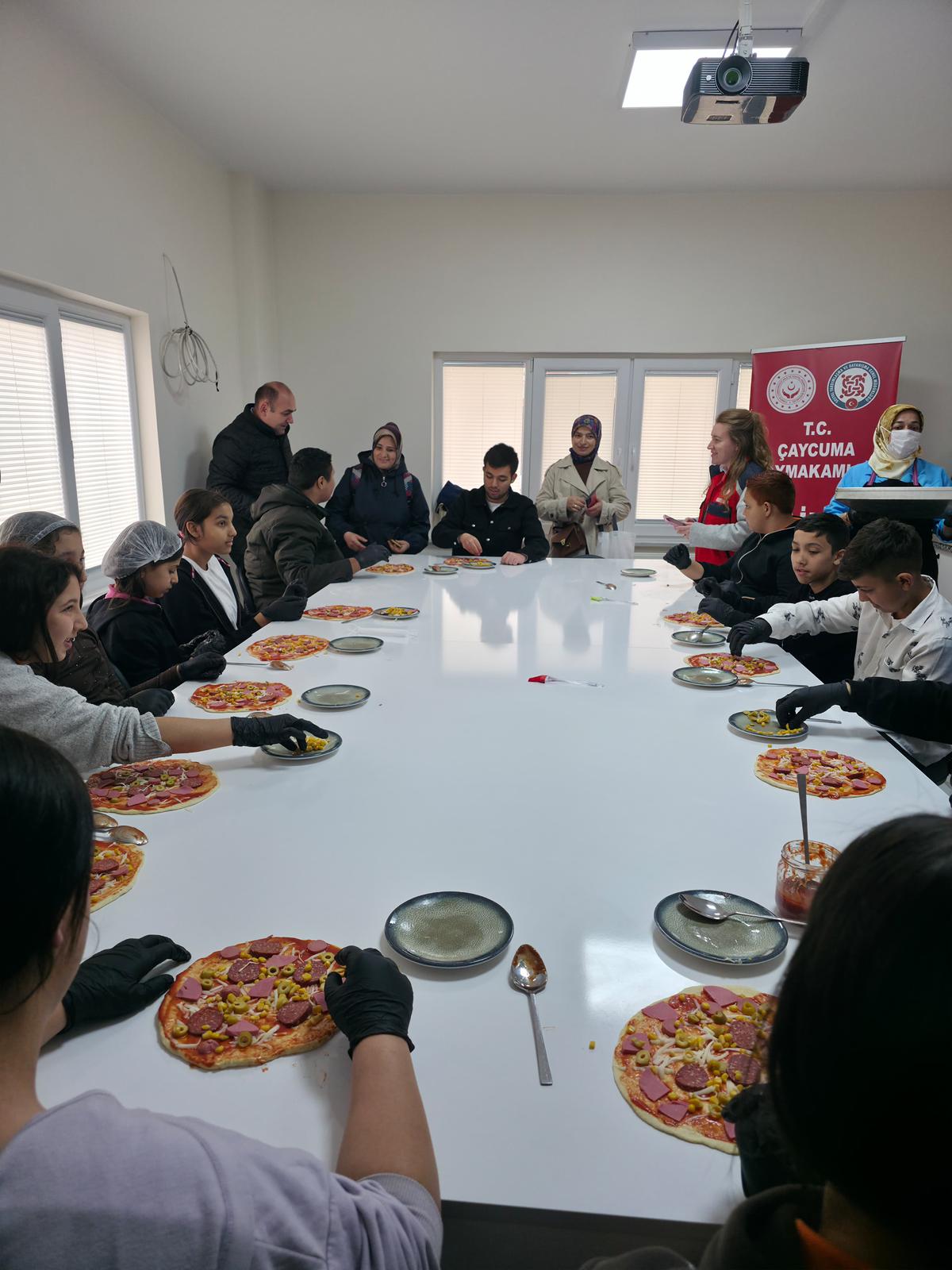 Çaycuma Sosyal Yardımlaşma ve Dayanışma Vakfı ve Çaycuma ADEM iş birliğiyle çocuklarımızla pizza etkinliği yapılmış, Çaycuma İlçe Sağlık Müdürlüğü iş birliğiyle sağlık çalışanlarımız tarafından çocuklarımıza bulaşıcı hastalıklardan korunma yolları anlatılmıştır.